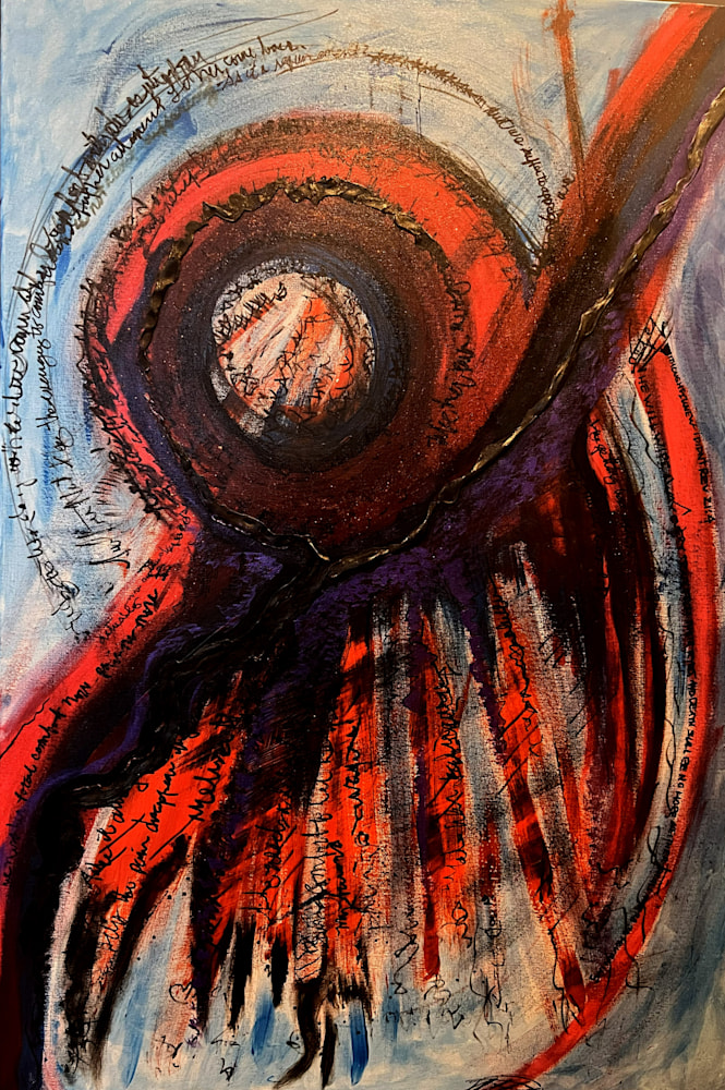 The work is spiritually grounded through my integration of a passage from the Book of Revelation that speaks to the tenderness of divine attention — the assurance that sorrow is seen, that tears are noticed, and that pain is not overlooked. I do not treat this promise as an ending, but as a presence that exists alongside suffering. The painting does not claim that pain has ceased; it affirms that pain is not abandoned.